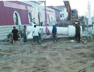 7月28日上午,當(dāng)?shù)卣匍_專題會議研究決定:責(zé)令“山寨版天安門”經(jīng)營者必須按原設(shè)計方案施工,立即拆除所謂的“華表”,因其占道影響交通;立即整改外裝飾和外造型,否則按違章建筑處理。截至記者發(fā)稿時,此農(nóng)家樂飯店門前“華表”已被拆除,兩側(cè)的大字也已拆除。
