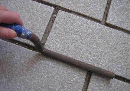 3、填 縫:用平橡膠抹子將攪拌好的彩色勾縫劑嵌入并填滿瓷磚縫。