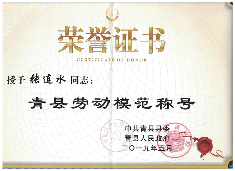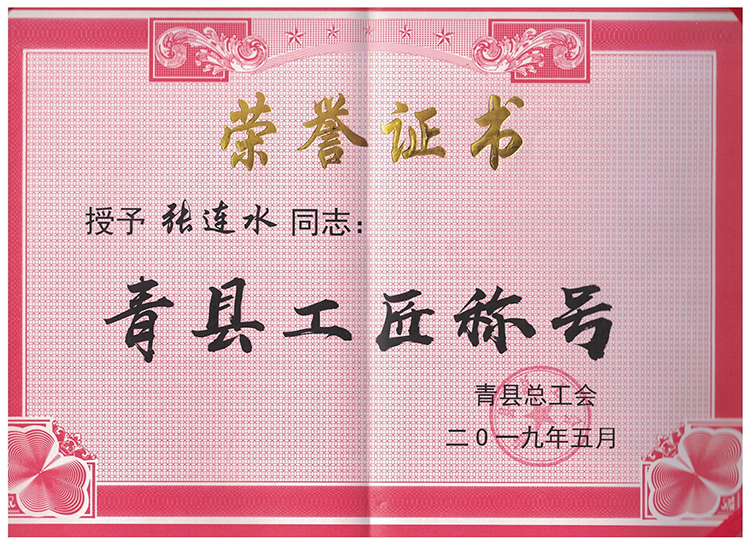 2013年以來(lái),全縣各族人民深入貫徹落實(shí)習(xí)近平新時(shí)代中國(guó)特色社會(huì)主義思想和黨的十九大及十九屆二中、三中全會(huì)精神,積極投身到加快建設(shè)創(chuàng)新驅(qū)動(dòng)經(jīng)濟(jì)強(qiáng)縣的偉大事業(yè)中,在推進(jìn)轉(zhuǎn)型發(fā)展、脫貧攻堅(jiān)、同步小康進(jìn)程等各條戰(zhàn)線上,涌現(xiàn)出一大批品德高尚、愛(ài)崗敬業(yè)、業(yè)務(wù)精湛、貢獻(xiàn)突出的先進(jìn)模范人物。為弘揚(yáng)先進(jìn)模范人物的時(shí)代精神,凝聚和傳播正能量,縣委、縣政府決定,授予張連水同志“青縣勞動(dòng)模范”和“青縣工匠”稱(chēng)號(hào)。